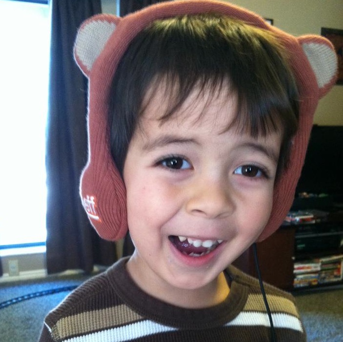 My son wearing modeling my headphones. They look like his, but they’re really mine.
