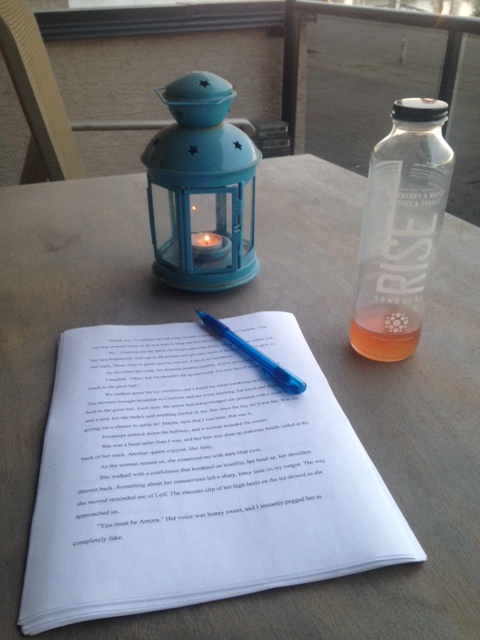 -at the kitchen table (Here’s a picture of my awesome deck writing setup, haha).