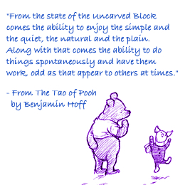 The Uncarved Block is an ancient Taoist principle. I’ll fully disclose here that I am not Taoist, so I’ll turn to a few quotes from The Tao of Pooh by Benjamin Hoff and the original Winnie the Pooh by A.A. Milne to illustrate the meaning of the Uncarved Block: