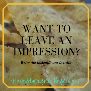 When I first started writing this was my biggest oversight. I would focus so hard on the big structure that I forgot to mention the insignificant. Of course they were only insignificant to me because they were petty to the storyline. And let’s face it, more work. Yet, I didn’t realize how these details would connect me to my audience and make my writing take off.