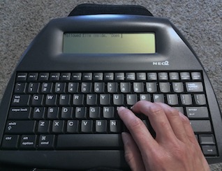 Now for the AlphaSmart. If you’ve never heard of this wonderful device, that’s because they are fairly old school. The AlphaSmart is a portable word processor that is used for one thing only: typing. There are several models out there, and I’ll explain where I got mine below.