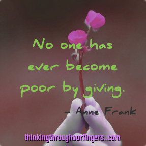 My son has been participating in an Arts and Music camp all week, a venture that he loves to partake in every summer (because my art skills are limited to a small subset of crafts we find on Pinterest). This year the camp’s theme is “Community,” and when he came home the first day and told me this, it made me reflect upon my writing community. Writers cannot exist in isolation, though we may feel isolated when we sit at our computers with no one but our characters to keep us company. Your particular community may be your critique partners, people you meet for coffee or lunch or brainstorming, a reading group, the people with whom you connect with on Facebook or Twitter, or others. The other week, I saw a post shared by one of my social media friends where she wanted to thank an anonymous person who had paid for her order at a Starbucks drive-thru. In turn, she paid for the person behind her in a drive-thru on a different day. The generous gesture strikes us because it seems unusual and wonderful, but we do this all the time, sometimes without even realizing it: paying it forward without expectation.