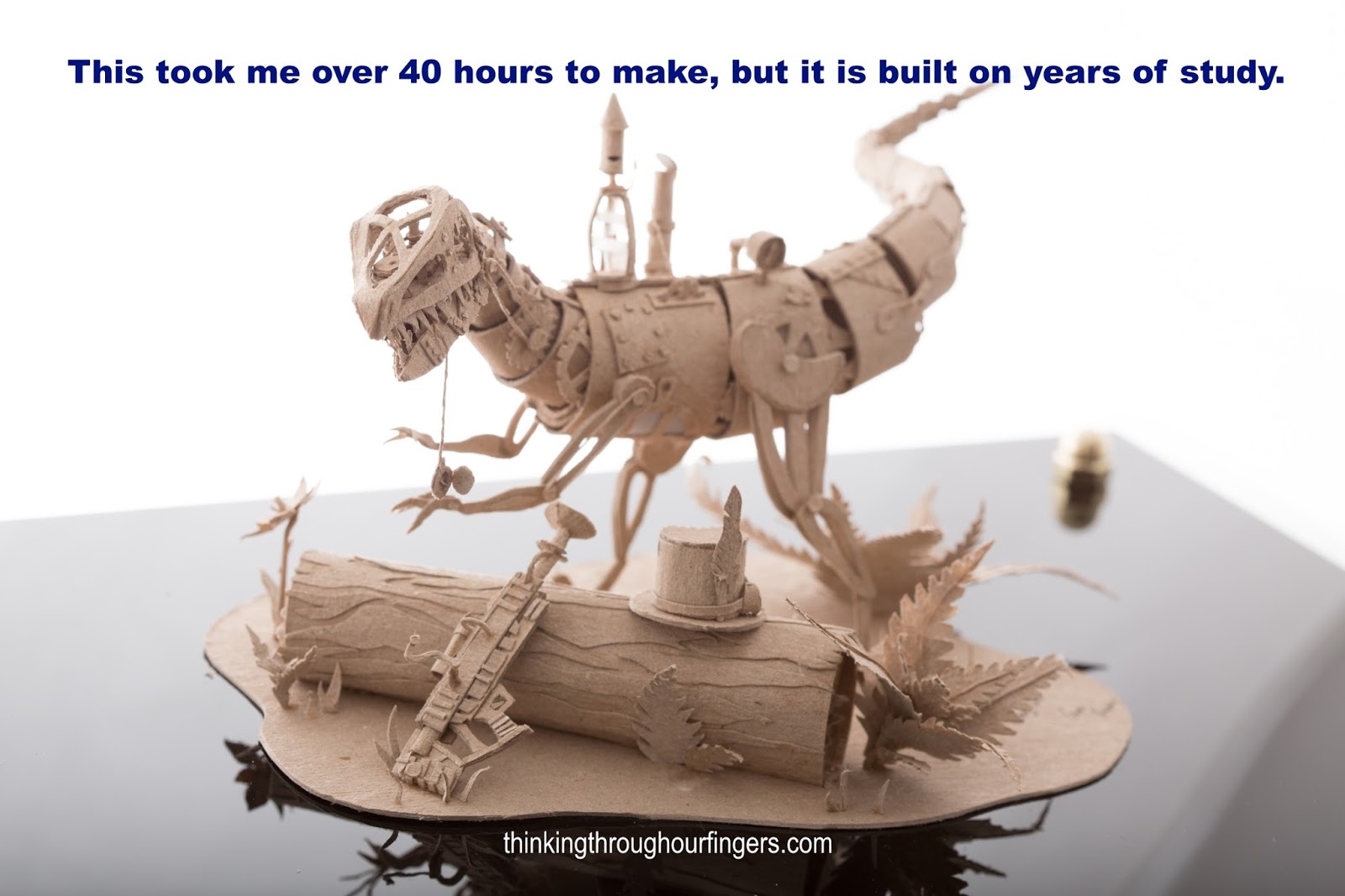 Yes, there’s nothing like the spark of a new idea and the excitement of pounding on the keyboard full of visions of far off worlds. Yes, the initial sketch of a new cardboard sculpture fills me with joy and a delighted eagerness to get started. Those feelings are a big part of being a creative, but you must be patient with your art, no matter the form. You must give art time, room to grow, and nurturing if you ever want to be successful. That takes patience. A lot of patience. Dump trucks full of patience.